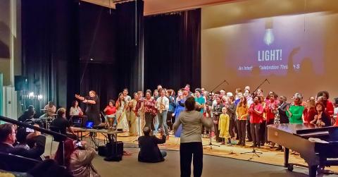 YAs from Pittsburgh Sai Center participate in an interfaith gathering of healing through song to honor the lives of the victims of the mass shooting that took place at the Tree of Life Synagogue.