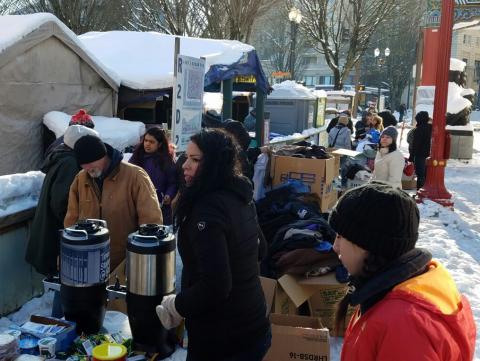 The YAs in Seattle carried out a winter clothing drive for the homeless. While distributing the clothing, they were taught many humbling lessons about the joy of sharing and caring from the very people they were serving.