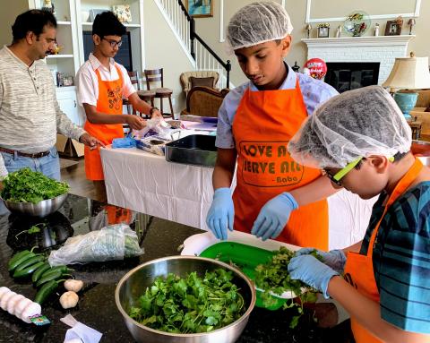 SSE children at the South Bethesda Sathya Sai Center prepared a burrito meal for the homeless women and children of the Helping Hands shelter in Maryland.