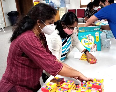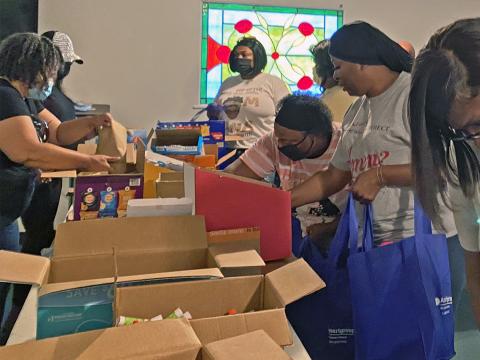 Bethesda Sai Center members volunteer at Comfort Cases where they process donations, count inventory and fill backpacks with items that provide comfort, hope and love to youth entering foster care.