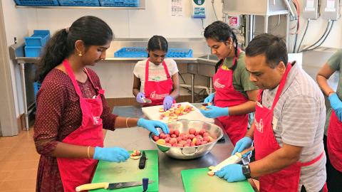 Sai volunteers participate in a gleaning project to pick left-over farm produce for delivery to food banks, and in the process, understand the value of not wasting food.