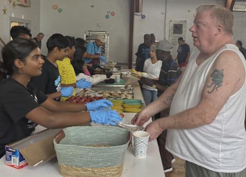 Every third Saturday, the Sri Sathya Sai Center of Cherry Hill, NJ, serve hot, nutritious meals to 50-75 homeless individuals at Mount Holly Shelter in New Jersey. From 9 am to 2 pm, the shelter is filled with warmth and laughter as 15 dedicated volunteers find their own hearts enriched by this monthly compassionate act of service.