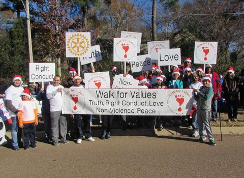 SSIO members participate in a Walk for Values contingent as part of the annual Christmas holiday parade in Germantown, TN