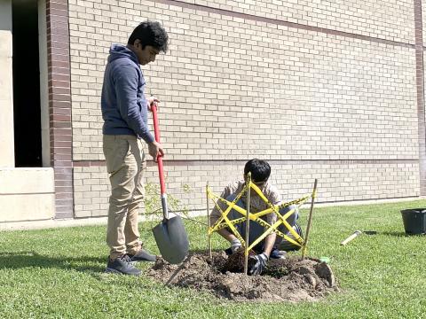 About 30 Sai volunteers, including SSE students, celebrated Earth Day by planting sacred and fruit trees at the Sri Sathya Sai Baba Abode of Supreme Peace in Tracy, CA. Building and consecrating a Tulasi shrine awakened a sense of sacredness to the day's activities. Finally, savoring the sweet, harvested sugar juice at day's end reminded them of the profound impact of nurturing plants with love and spirituality.